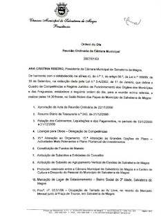 Diz a Senhora Presidente da Câmara Municipal de Salvaterra de Magos, que ela, é quem faz a ordem de trabalhos das sessões de câmara e que por esse motivo não agenda os assuntos propostos e legalmente apresentados, pelo Vereador Vasco Feijão.